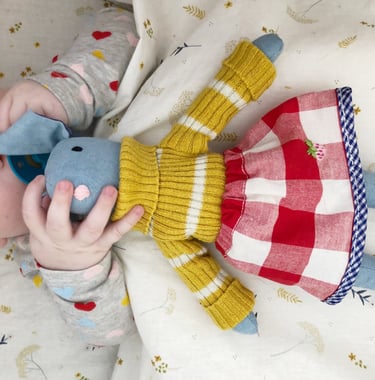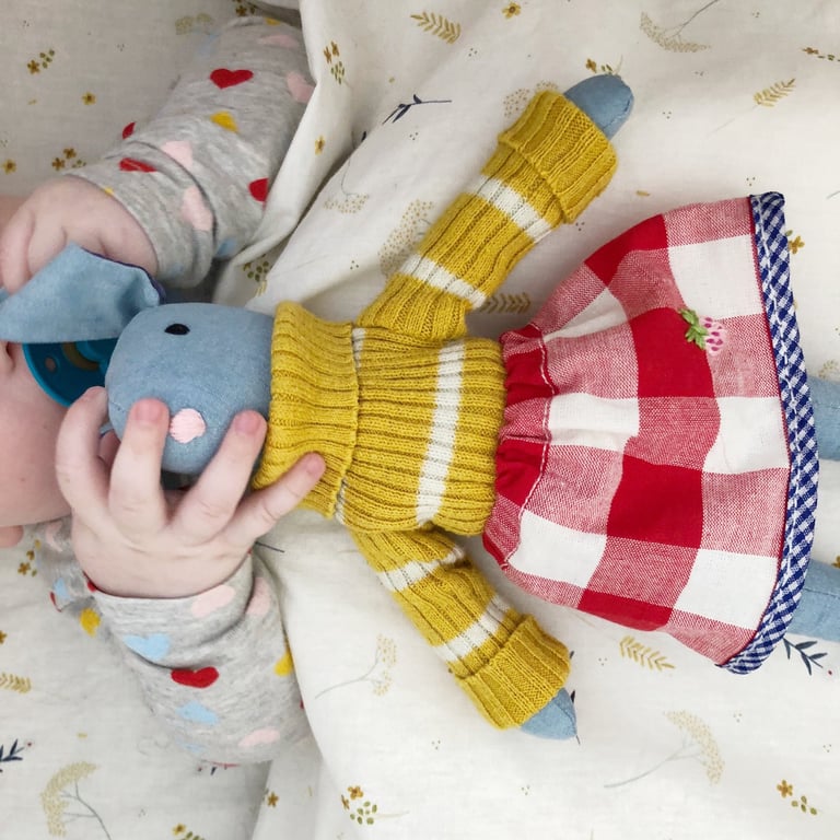 Pandemijos pradžioje laukiausi savo dukrytės, o sėdint karantine tarp keturių sienų, dirbant iš namų, o po darbo dėliojant 1000 detalių dėliones kyla visokios mintys. Kilo ir mintis pasiūti Elenytei pirmąjį zuikį. Tada galėjau tik įsivaizduoti tą momentą, kai ji glaus prie savęs zuikio kūnelį, pasiūtą iš mano marškinių ir krimstels languotą ausį – iš mano vyro marškinių. Dar žinojau, kad tas zuikis būtinai turės sijoną, pasiūtą iš mano močiutės Helenos, kurios mano Elenytė nespėjo sutikti, suknelės. Vėliau sekė pelytė dukterėčiai ir mintis, kad reiktų šitų zuikių pasiūti daugiau.